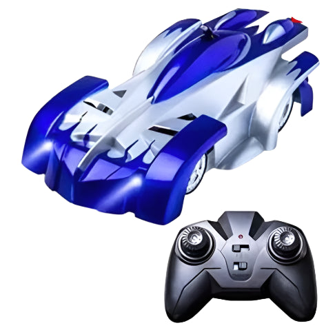 Masinuta WallClimber cu telecomanda, merge pe pereti, efecte luminoase, control la distanta 10 m, negru/albastru