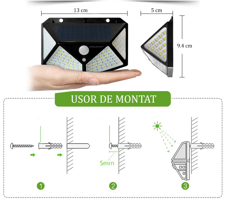 ☀️ Lampa solară cu 100 LED-uri și senzor de mișcare – iluminare inteligentă