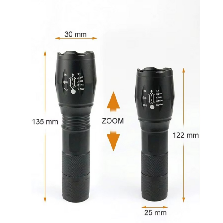 🔦 Lanternă tactică cu zoom – lumină direcționată, puternică și portabilă