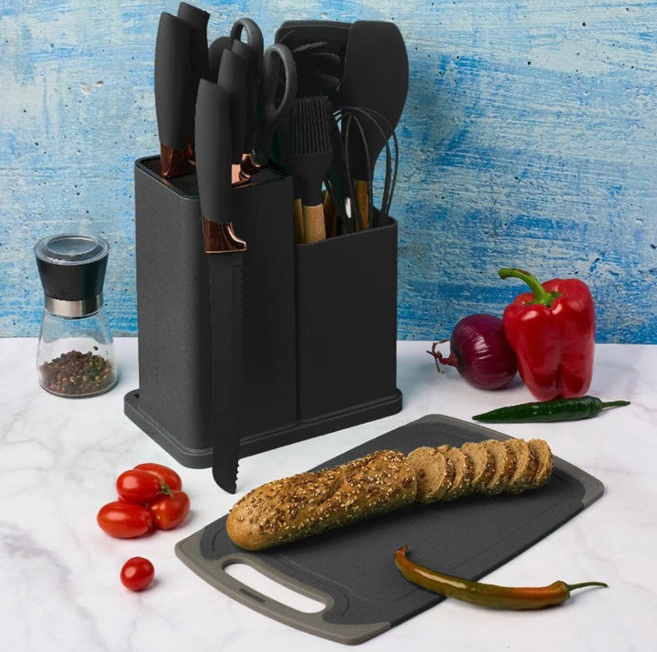 Setul nostru de 19 ustensile este conceput pentru a-ti oferi durabilitate, versatilitate si mai presus de orice – preparate alimentare delicioase fara prea mult efort.