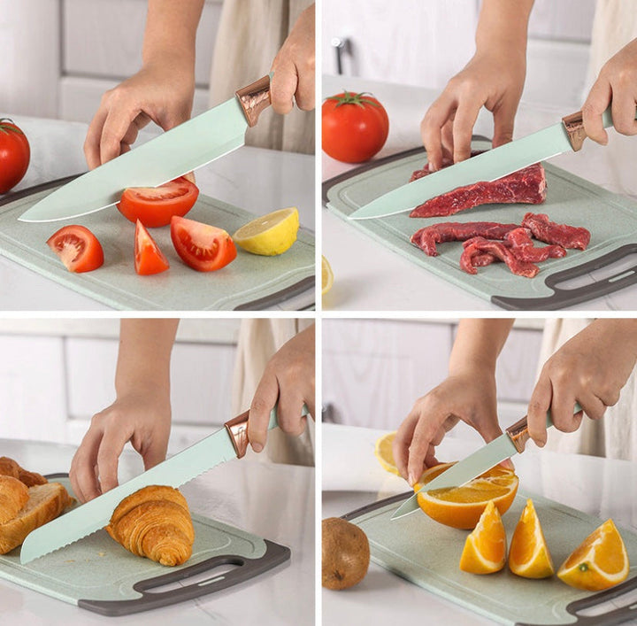 Spre deosebire de majoritatea seturilor de ustensile, acesta contine si un suport care te va ajuta sa le afisezi pe tejghea sau pe insula de bucatarie. Cu siguranta va atrage privirile tuturor musafirilor tai.