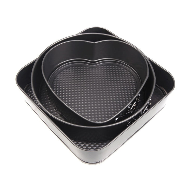 Set 3 Tavi pentru copt in forma patrata, rotunda si inimioara, cu fundul detasabil, confectionate din tabla de otel de calitate, ideale la crearea celor mai delicioase prajituri pentru cei dragi.