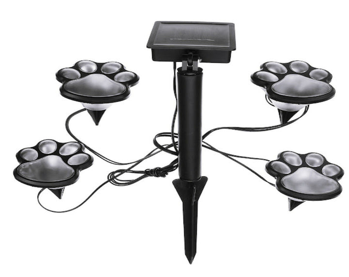 Oferă un decor creativ și amuzant grădinii tale cu acest set de lămpi tip amprente de cățel, iluminate cu LED-uri solare! Cele 4 amprente pot fi aranjate și fixate în mod arbitrar, cu ajutorul țăpușelor incluse.