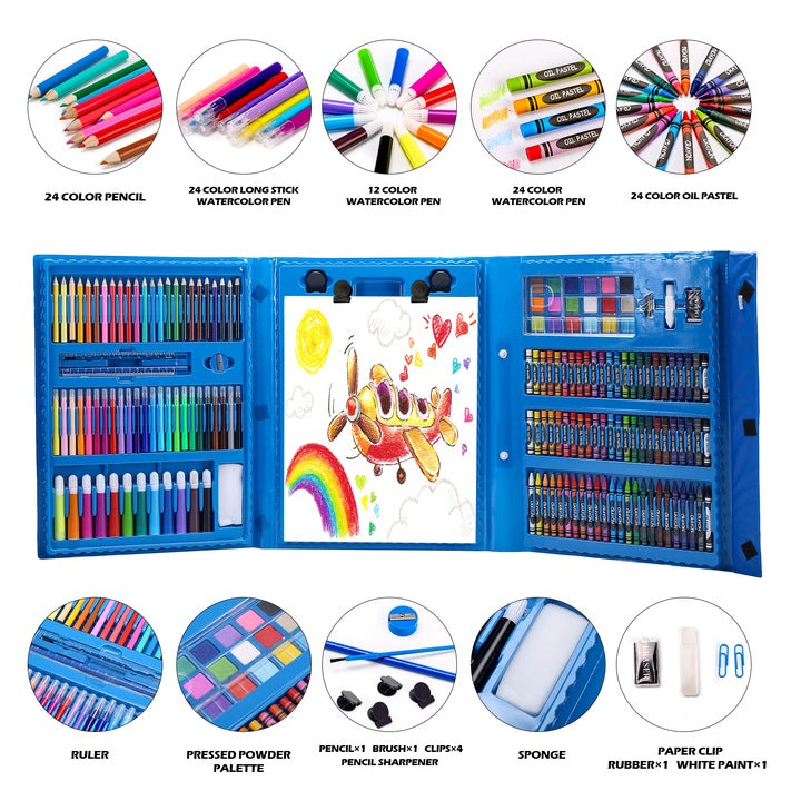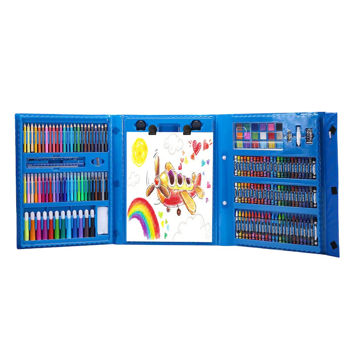 🎨 Set complet de pictură și desen – 208 piese, cutie compactă albastră