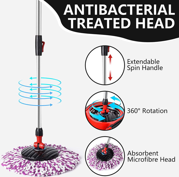 Sistemul rotativ integrat indeparteaza excesul de apa si curata mopul dupa fiecare utilizare.