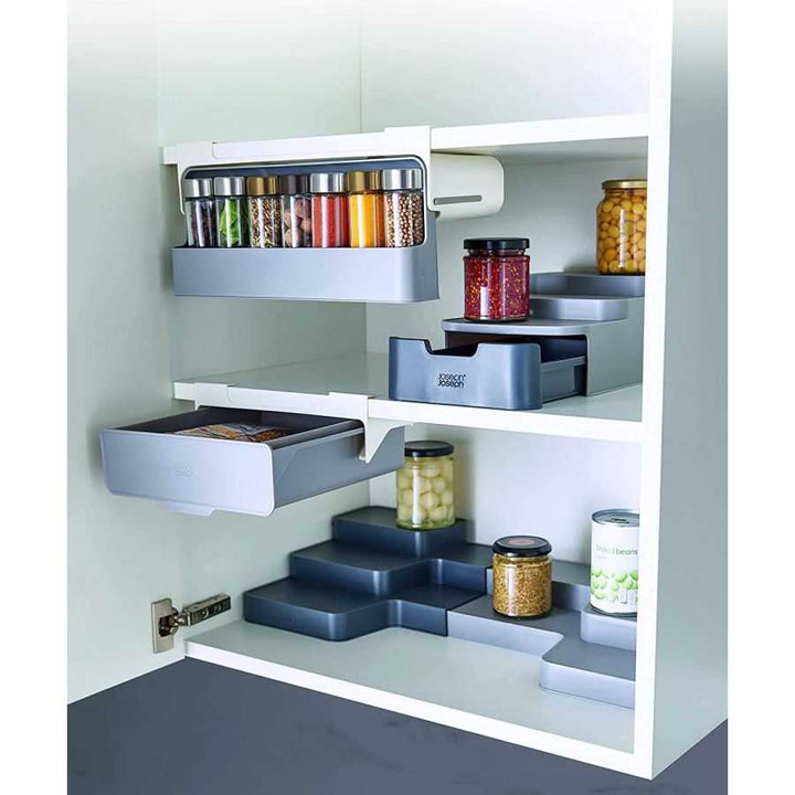 Suport organizator pentru condimente, suspendat, retractabil, montaj aplicat pe dulap, permite depozitarea condimentelor in mod ordonat si usor accesibil