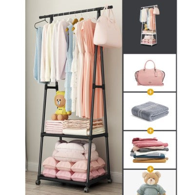 Suport triunghi pentru haine si umerase cu 2 rafturi inferioare + Cadou Boxa Bluetooth